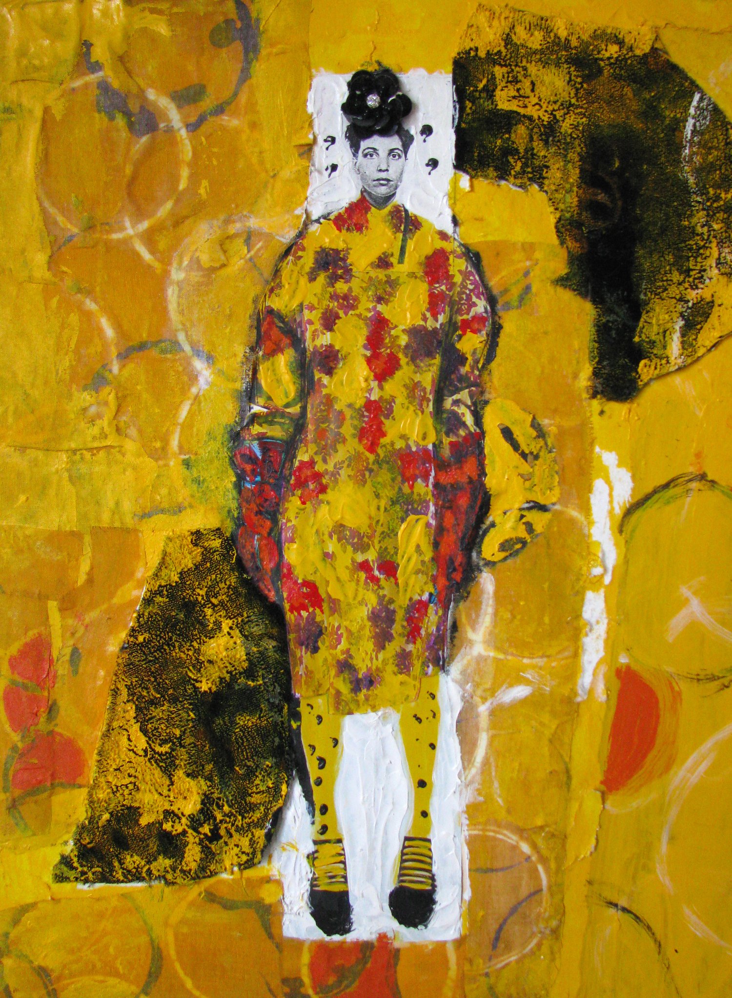 My artworks are motivated by personal history, creating narratives that are both, at once, intimate and universal. My pieces pay tribute to the handwork that was a significant factor in my upbringing and development as an artist. The collages with many textures and colors reference familial craft traditions such as machine and hand embroidery, applique, and patchwork. My artworks are visually playful and dynamically created with immediacy, spontaneity, and directness, works that live in the moment. With a rich vocabulary of contemporary images and vintage materials as inspirations, my artwork’s subjects stimulate conversation between the past and present.